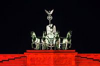 De Quadriga aan de beroemde Brandenburger Tor in de Duitse hoofdstad Berlijn 's nachts
