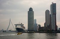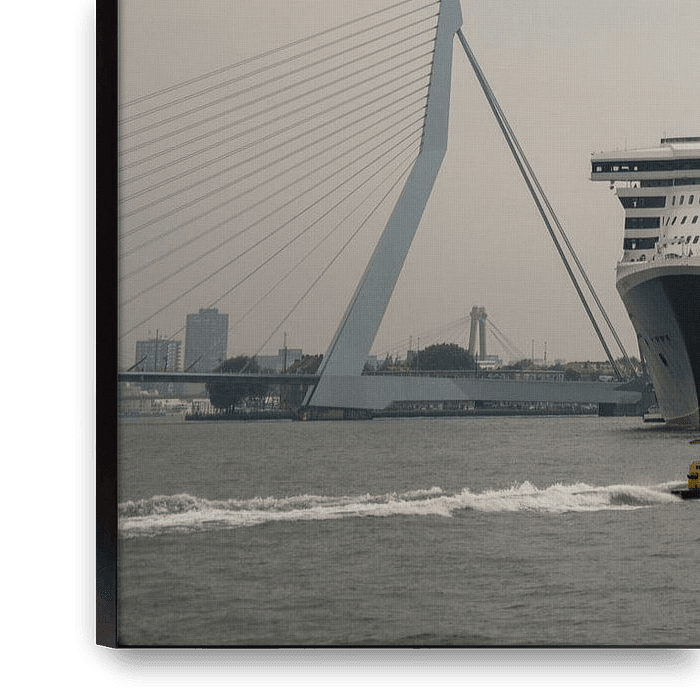 Koop de Rotterdam foto Queen Mary 2 afgemeerd en Hotel New York Rotterdam van scheepskijkerhavenfotografie op canvas, aluminium dibond, (ingelijste) fotoprint, behang en ArtFrame, op maat geprint in Fine-Art kwaliteit.