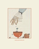 Een historische mode prent in een modern jasje: "Quelques bagues". Geïnspireerd door de art deco, een stijlbeweging die opkwam in de jaren twintig van de vorige eeuw. Nieuw zakelijkheid gemengd met moderne strakke lijnen en kleuren.