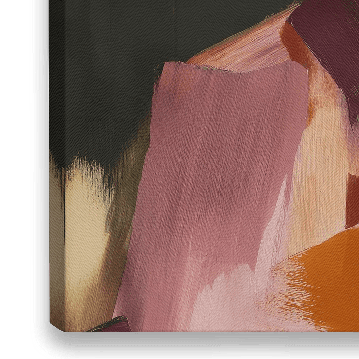 Quiet Confidence vangt de schoonheid van eenvoud: een vrouw in profiel, opgebouwd uit zachte penseelstreken en aardse tonen van oudroze, karamel en bordeaux.