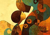 Details: abstract, schilderij, menselijk, omhelzing, modern, kunst, patroon, collage, aardetinten, gestileerd