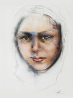 Het portret toont een jonge vrouw die niet spreekt, maar toch alles zegt. Haar blik is zacht en open, alsof zij volledig in het moment aanwezig is. In de subtiele lagen van kleur en lijn schuilt een gevoel van rust, kwetsbaarheid en innerlijke kracht. Het werk ademt ruimte — ruimte om te voelen, te reflecteren en even stil te…