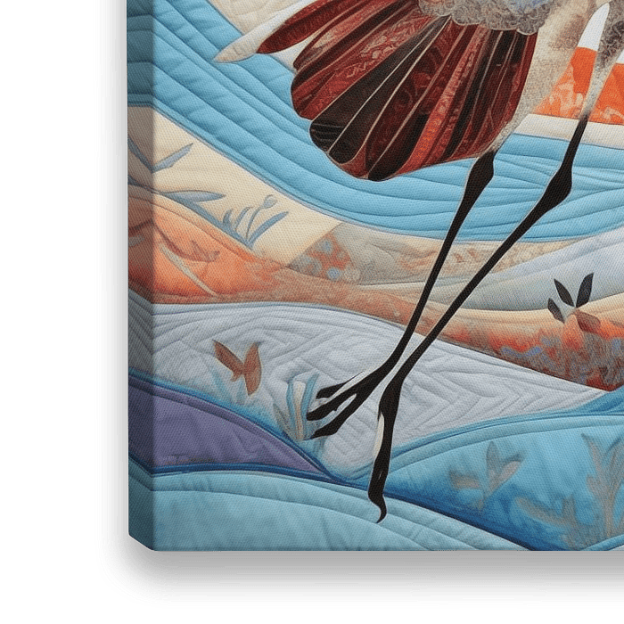 Abstract portret van twee kraanvogels in een quilt patchwork design.