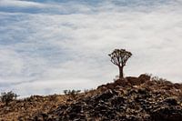 Deze quivertree staat eenzaam en alleen op een rotsige heuvel in Namibië