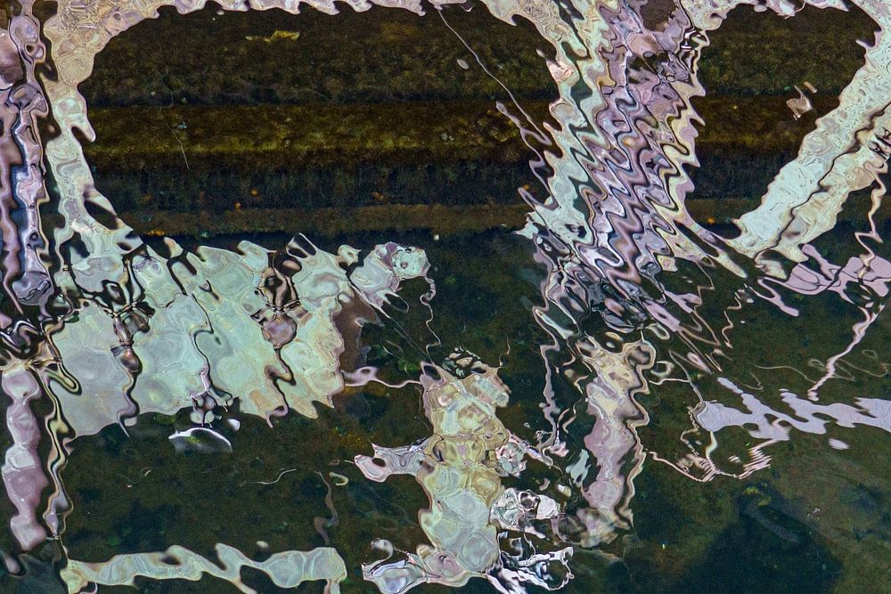 Moderne kunst gecreëerd door reflecties op een wateroppervlak.
