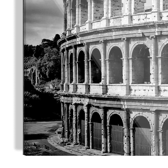 De historische buitengevel van het Colosseum. Een klassiek monochroom uitzicht vanuit Rome.