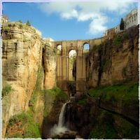 Fotografie van de beroemde brug Puente Nuevo in Ronda (Andalusië), Spanje. Ik heb het herkenningspunt van de stad een schilderachtig effect gegeven door beeldbewerking.