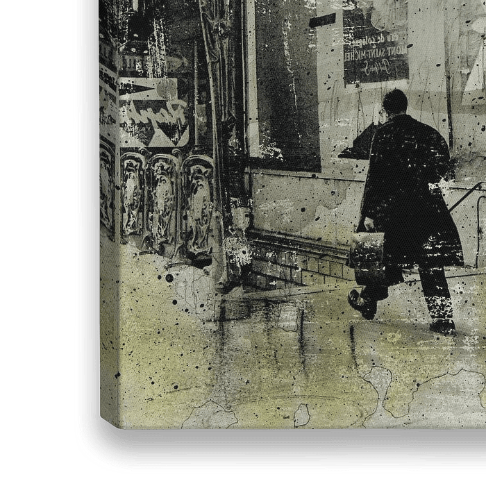 Mixed media en assemblage op papier. Dit werk hoort bij de serie 'collages'. De collages zijn opgebouwd met allerlei foto's, plaatjes en afbeeldingen die ik in de loop der jaren heb verzameld. Als eerste schilder ik een ondergrond met aquarel of acrylverf en bewerk deze met stempeldruk, verfspatten en krabbeltekeningen. Daarop wordt de collage in lagen aangebracht en soms weer losgetrokken om een oud en verweerd effect te creëren. Door de lagen over elkaar heen aan te brengen ontstaat een transparant effect, zoals alleen met aquarelverf mogelijk is. De eerste lagen zijn zichtbaar door de collage lagen heen. De meeste collages zijn bewerkt met acrylverf, in de vorm van stempelwerk of gewoon overgeschilderd. Daarnaast gebruik ik vaak een balpen of potlood om op de collages te tekenen. Er zullen veel kleine details zichtbaar worden als het werk geprint is op een groter formaat!