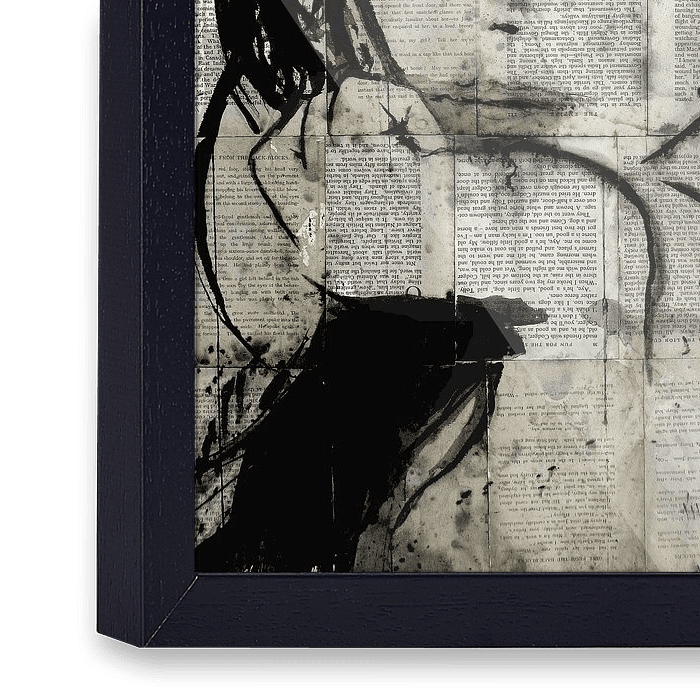 Portet vrouw in zwart wit in mixed media stijl. Collage van kranten en inkt.