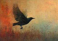 Raaf Zonsondergang | Twilight Raven - schilderij zwarte raaf zonsondergang