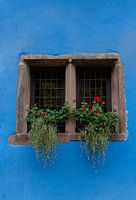 Een print waar de kleuren vanaf spatten! De foto is genomen in Riquewihr in de Franse Elzas. Hier vind je veel vakwerkhuizen, maar ook veel felgekleurde huizen, net zoals deze muur. Het blauw steekt mooi af tegen het groen en rood van de plantjes in het raam. Past goed bij een landelijke sfeer. Kom in Franse sferen met deze kleurrijke…