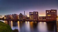De Raambuurt in Deventer is een voormalige industriewijk die is omgebouwd tot moderne woningen. De gebouwen liggen aan de Buitengracht bij de Bergpoort, een van de toeganswegen naar het historische centrum. We zien de Raambuurt hier in de avond tijdens het blauwe uur.