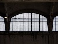 Dit is een silhouet van een raampartij in een oude fabriek in Limburg, Nederland