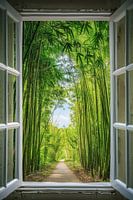 Koop de foto Raamuitzicht in het bamboebos van Poster Art Shop als print op canvas, aluminium dibond, (ingelijste) fotoprint, behang en ArtFrame. Voor jou op maat geprint in Fine-Art kwaliteit.