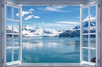 Ervaar de majestueuze schoonheid van gletsjers en met sneeuw bedekte bergen via deze prachtige raamschildering. De helderblauwe lucht en kalme wateren creëren een scène van adembenemende rust en grandeur. Perfect voor liefhebbers van natuurmotieven en landschapskunst die de koele pracht van het noordpoolgebied in hun woonkamer willen…