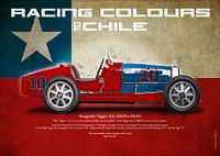 Illustratie van een serie racewagens in nationale racekleuren uit de hele wereld.