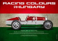 Illustratie van een serie racewagens in nationale racekleuren uit de hele wereld.