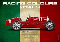 Illustratie van een serie racewagens in nationale racekleuren uit de hele wereld.