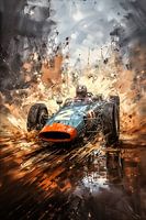 Met de tekst : art classic car racing, oil paint.