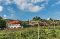 Aussicht auf die Weinberge mit Bismarckturm (links) und Spitzhaus. Im Vordergrund befindet sich das Schloss Hoflößnitz, Radebeul bei Dresden, Landkreis Meißen, Sachsen, Deutschland, Europa