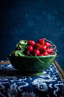 Eenvoudig stilleven met radijsjes in een groene schaal