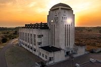 Luchtfoto van radiozendstation Radio Kootwijk bij een ondergaande zon