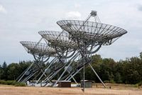 Westerbork Drenthe The Netherlands Westerbork Synthesis Radio Telescope (WSRT) aka Radiosterrenwacht Westerbork. The telescope is an aperture synthesis interferometer consisting of 14 antennae in and around the former Kamp Westerbork.
