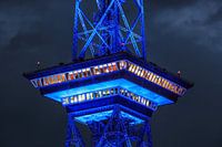 De restaurantvloer van de Berlijnse Funkturm, hier in speciale verlichting ter gelegenheid van een licht evenement in Berlijn