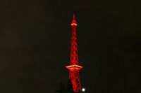 Radiotorens Berlijn in rood licht - ter gelegenheid van een lichtfestival in Berlijn