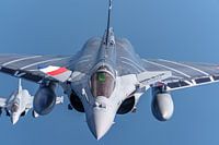 De Rafales van het Rafale Solo Display Team 2022 air to air gefotografeerd in het Griekse luchtruim. De vliegtuigen namen deel aan de Athens Flying Week Airshow en zijn vlak voor de aankomst op de vliegbasis Tanagra gefotografeerd.