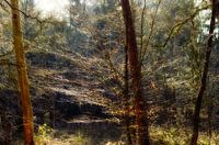 Als de zon zo laag door de bomen schijnt verandert het bos in een ragfijn sierlijk sprookje in herfstkleuren