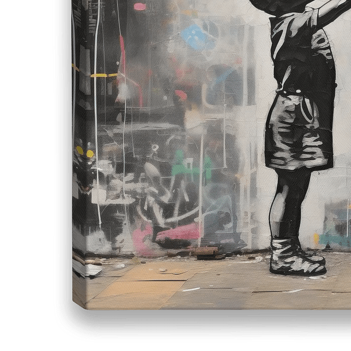 Koop dit portret Rainbow Balloons | Banksy Style Urban Art van Blikvanger Schilderijen op canvas, aluminium dibond, (ingelijste) fotoprint, behang en ArtFrame, op maat geprint in Fine-Art kwaliteit.