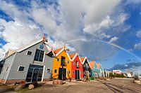 Big rainbow over buildings in Zoutkamp, Groningen, Netherlands