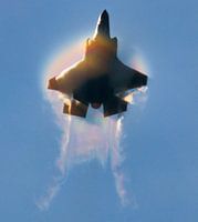 Amerikaanse F35 die mooie condense op de vleugels kreeg tijdens de show