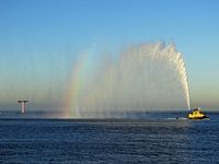 The patrol vessel of the Port of Rotterdam is testing its fire equipment.