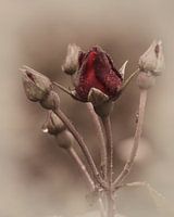 Na een regenbui ga ik er graag op uit om foto's te maken. Bijzonder sfeervolle foto van regendruppels op rozenknopjes.