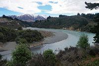 Over ‘Rakaia rivier en bergen op zuider eiland in Nieuw Zeeland’ van Aagje de Jong