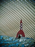 De avonturen van Kuifje is een serie stripverhalen van de Belgische maker Hergé. Kuifje's Raket naar de maan wordt gedaan met een raket gebaseerd op de Duitse V2 raketten uit de 2e Wereldoorlog. Om een of andere herinnerings reden hadden ze deze replica opgesteld in het Guillemins spoorweg station in Luik.