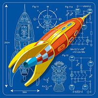 Raket in blauwdruk structuur illustratie concept ontwerp kunstwerk.