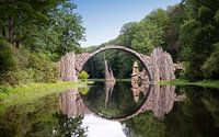 De Rakotzbrug stamt uit 1860. De Rakotzbrücke, zoals hij officieel heet, is door social media beroemd geworden. Het is inmiddels een van de meest beroemde bruggen van Duitsland en ter wereld. De reden is simpel; door de weerspiegeling in het water vormt hij een perfecte cirkel.
