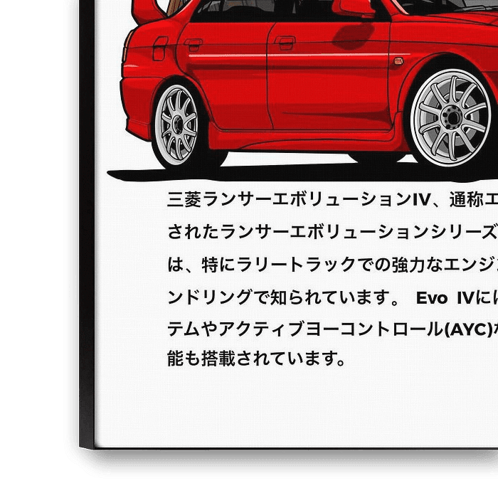 Een opvallende rode straatmachine geparkeerd voor een gezellige ramenwinkel, een mix van Japanse autocultuur en stedelijke nostalgie. De levendige tinten en klassieke sfeer geven de essentie weer van nachtelijke ritten en authentiek straatgevoel. Perfect voor fans van op JDM geïnspireerde kunst en nostalgische stadsgezichten.