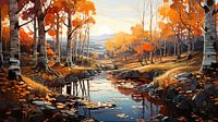 Een schilderachtig landschap ontvouwt zich voor onze ogen, gedomineerd door de ranke berkenbomen. De zilverwitte bast steekt af tegen de omringende natuur. De bomen omringen een schilderachtig meertje, waarvan het kalme water weerspiegelt in de zonnestralen. De lucht is fris en helder, doordrenkt van de geur van de natuur. Dit rustige tafereel ademt sereniteit en nodigt uit tot contemplatie, waarbij de schoonheid van de eenvoudige, natuurlijke wereld volledig tot haar recht komt.