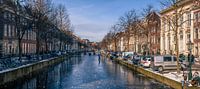 Een zeldzaam plaatje: een bevroren Rapenburg met nog een paar schaatsers die het aandurven op het ijs.
