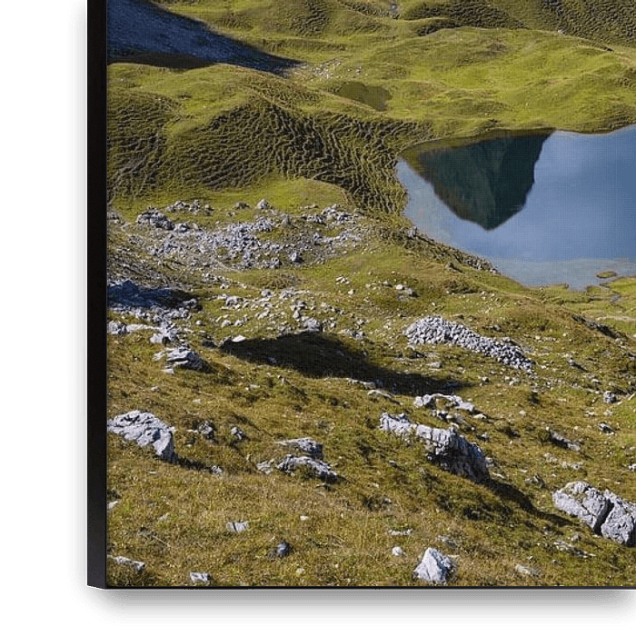 Jouw gekozen kunst op doek, gespannen in een aluminium frame. Snel en eenvoudig te verwisselen voor een frisse uitstraling en helemaal zoals jij het wilt.