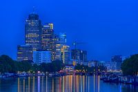 Dit werk is gemaakt op het hoogtepunt van het blauwe uur en toont het hoogste gebouw van Amsterdam, de Rembrandttoren. De lichtjes geven een fantastisch lijnenspel op het vlakke water van Amstel.
