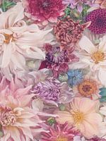 Collectie: Ondergedompeld in kleur Diverse kleurrijke Dahlia's en bloemen ondergedompeld in water op een lichte gestructureerde achtergrond.