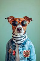 Met zijn charmante grijns en coole zonnebril straalt deze Rat Terrier een ongeëvenaarde persoonlijkheid uit. Zijn modieuze spijkerjasje en casual sjaal geven hem een vleugje stijl en zelfvertrouwen. De alerte, waakzame ogen lijken klaar om elk avontuur in stijl aan te gaan!