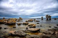 Koop de foto Raukar op Fåro bij zonsondergang van Hanneke Luit als print op canvas, aluminium dibond, (ingelijste) fotoprint, behang en ArtFrame. Voor jou op maat geprint in Fine-Art kwaliteit.