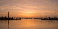 Langs de Lek: Nicolaaskerk Ravenswaaij aan de horizon en links steenfabriek de Bosscherwaarden.