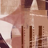 Collage van organische en geometrische vormen, penseelstreken, lijnen en texturen.